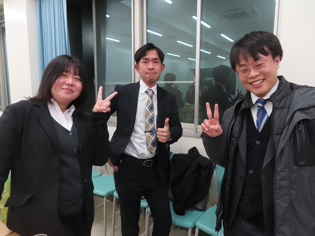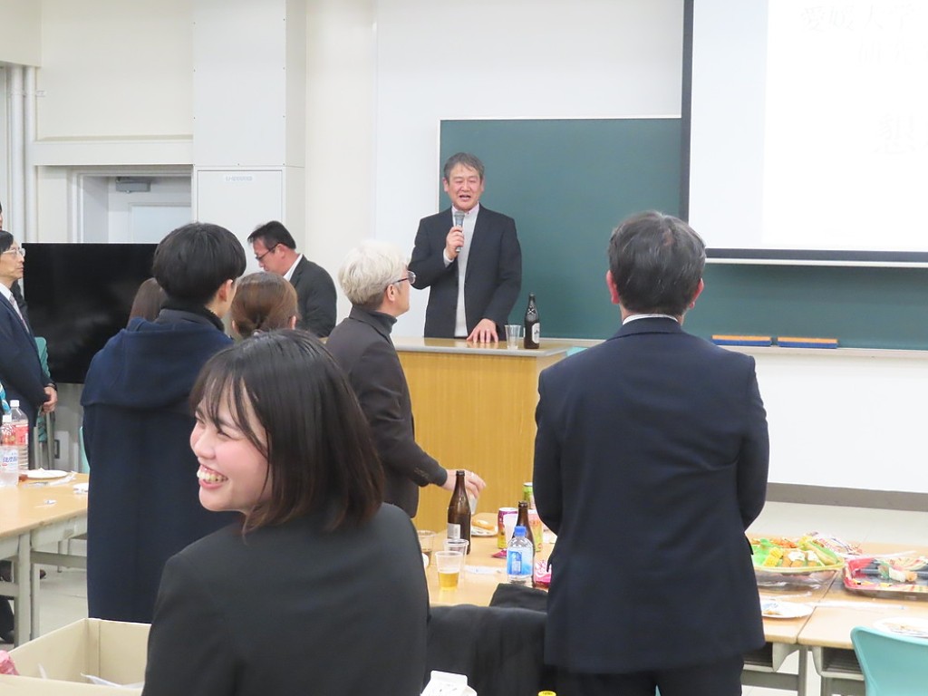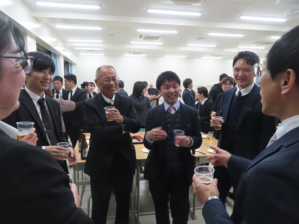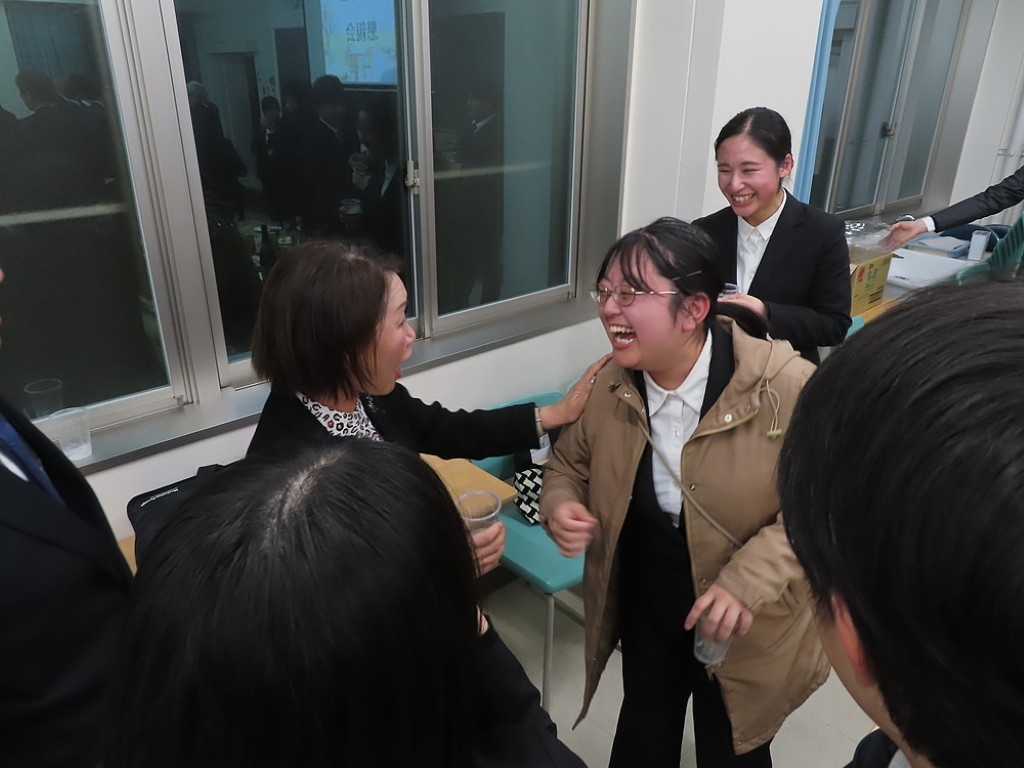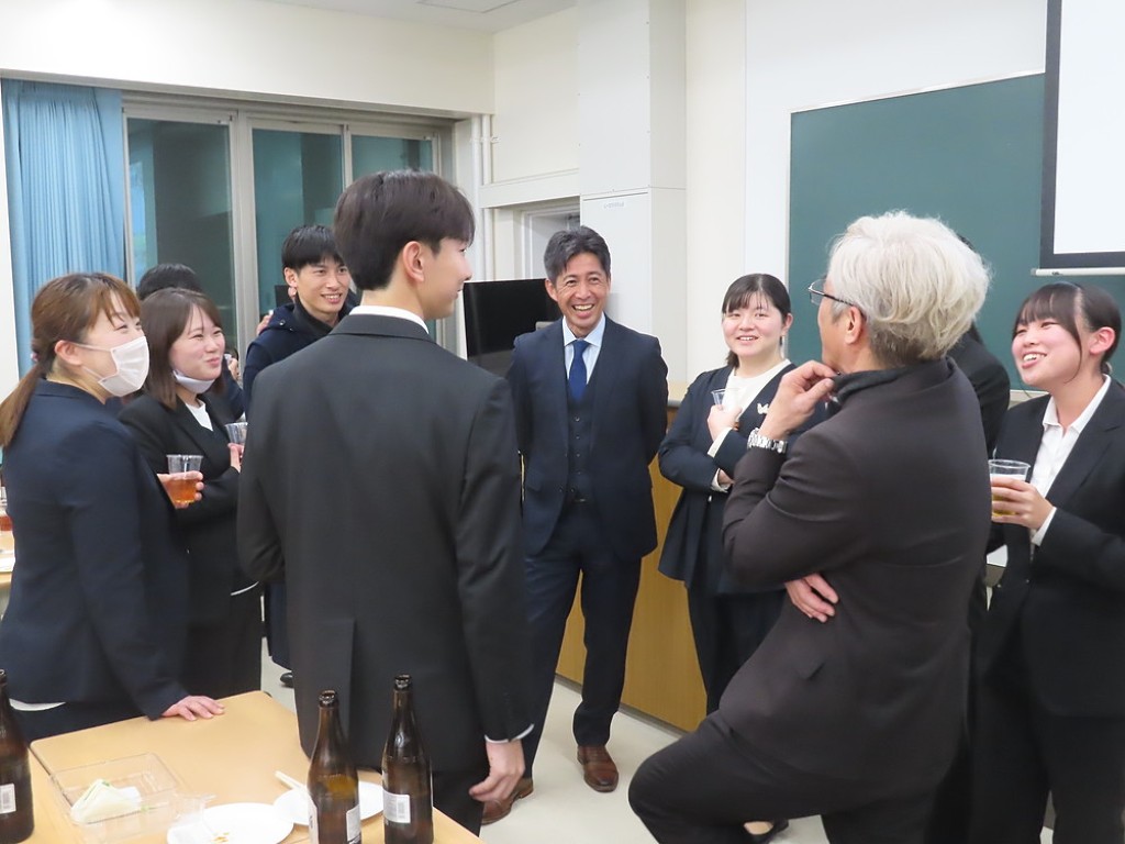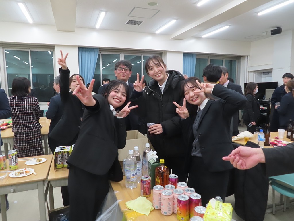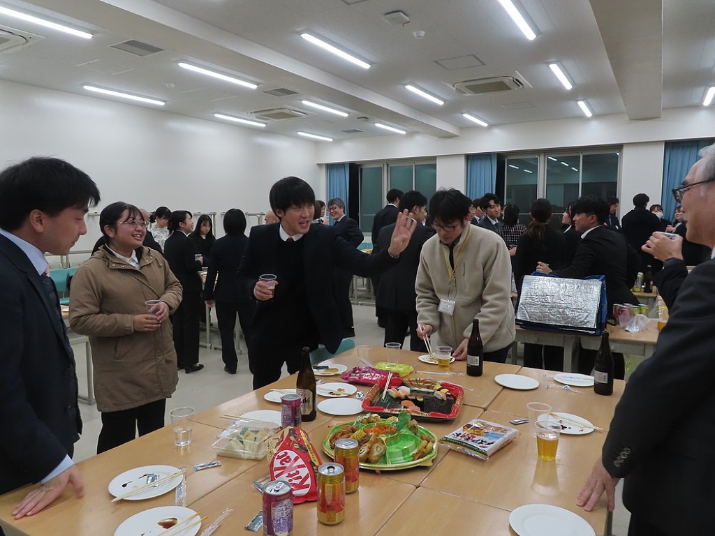 アルムナイ総会の後の懇親会では先生方と現役の院生、卒院生、皆、和やかに、和気藹々とした雰囲気で、大学院の思い出話や研究大会の反省などの話に花が咲きました。研究発表会の緊張感から解き放たれて、皆、とってもいい笑顔ですね。最後は恒例となった、専攻長による万歳三唱で、会を締めました。気合いの入った力のこもった「万歳!」の言葉に教職大学院の力強い未来を感じました。