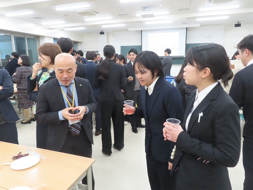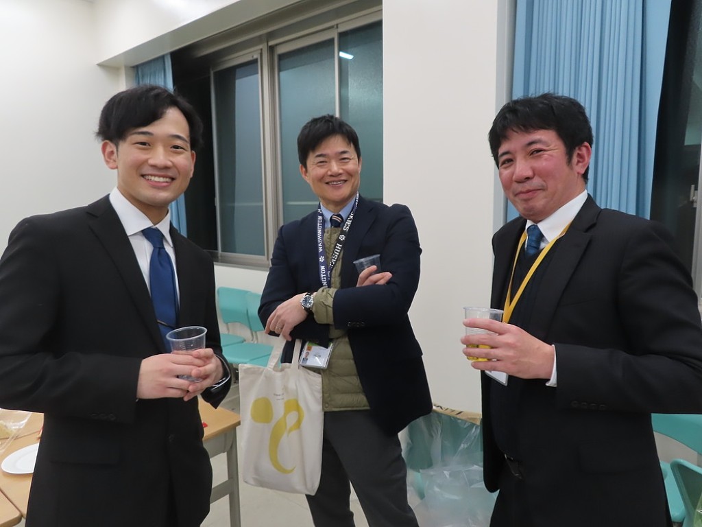 研究発表会の後には、アルムナイ総会と懇親会が行われました。アルムナイとは本教職大学院の同窓会のことです。研究発表会には毎年、多くの卒院生が集まることから、この時にあわせて総会を開いています。教職大学院が設立10年目。今回、1期生の先輩も集まってくださいました。